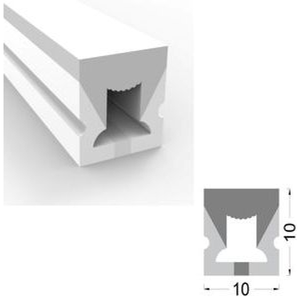 Силиконовая оболочка для светодиодных лент. Трехстороннее свечение. Используется для создания гибкого светодиодного неона. Максимальная ширина используемой светодиодной ленты- 6 мм. Размеры 10*10 мм. Отпускается кратно 1 метру. При использовании светодиодных лент 12/24 Вольта длина ленты, подключенной последовательно, не должна превышать 5 метров. При необходимости больших длин используйте параллельное подключение отрезков до 5 метров