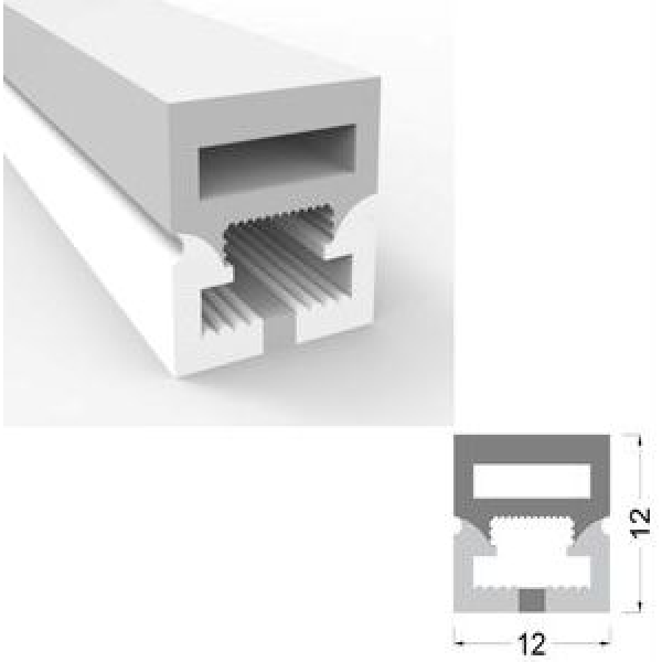 Силиконовая оболочка для светодиодных лент. Свечение в вертикальной плоскости. Используется для создания гибкого светодиодного неона. Максимальная ширина используемой светодиодной ленты- 8 мм. Размеры 12*12 мм. Отпускается кратно 1 метру. При использовании светодиодных лент 12/24 Вольта длина ленты, подключенной последовательно, не должна превышать 5 метров. При необходимости больших длин используйте параллельное подключение отрезков до 5 метров