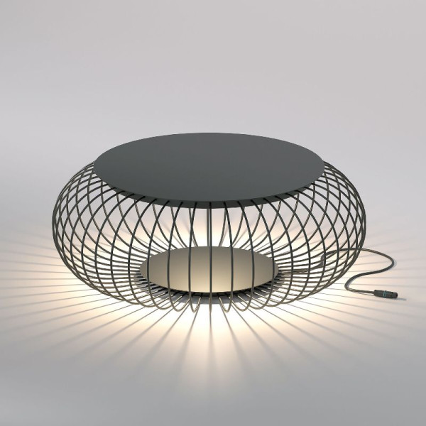 Светодиодный источник света с мощностью 11 Вт расположен под крышкой, что обеспечивает рассеянный световой поток. Структура стальных стержней, организованных по кругу, помогает создавать эффект света и тени на поверхности.