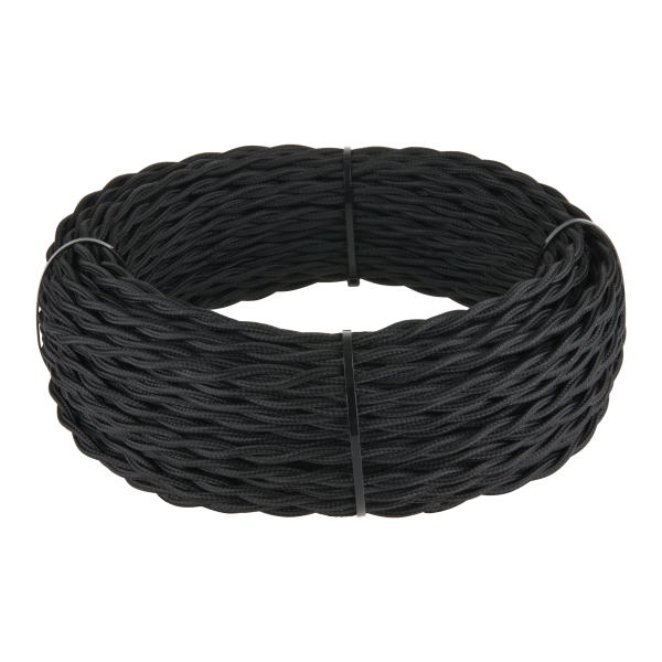 Ретро кабель витой 3х2,5 черный 50 м. Многожильный медный провод обеспечивает гибкость кабеля и его высокие электротехнические характеристики. Наружная оплетка кабеля имитирует натуральный шелк.