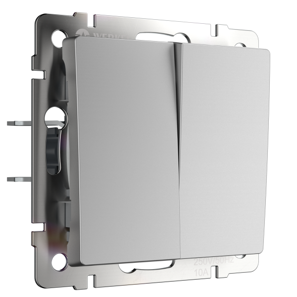 Эргономичный встраиваемый двухклавишный выключатель в серебряном цвете 10 А 250 В, 50 Гц W1120006 является важнейшим элементом любой домашней электросети, служащим для управления света. Выключатель представляет собой механизм нажимного типа, имеющий металлический суппорт и декоративные накладки.